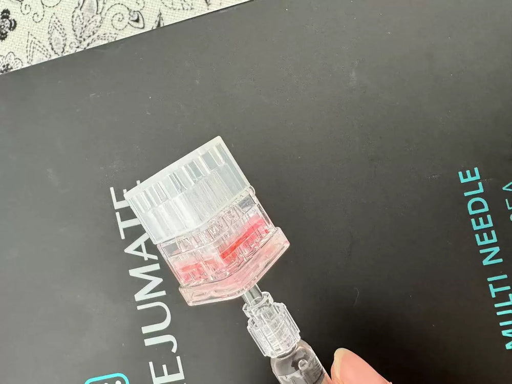 - 採用0.8mm/0.9mm細小(34G)無菌注射針自動注射水光到皮膚中