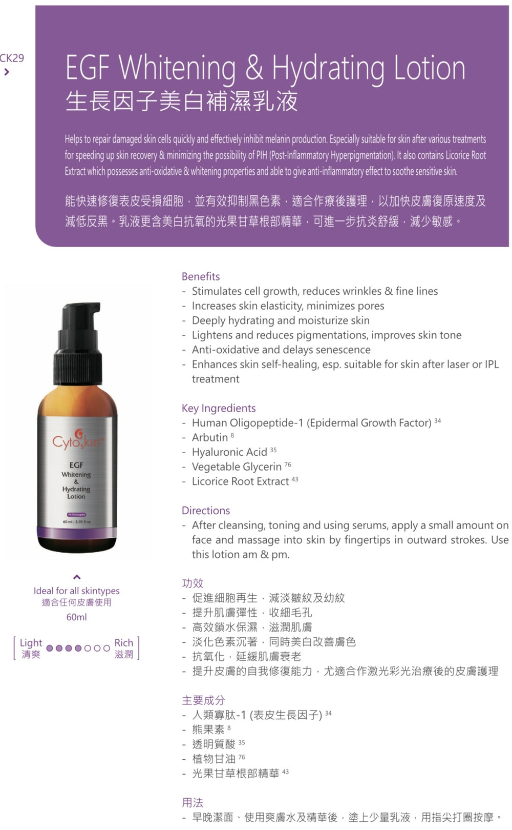 Cytoskin EGF Whitening & Hydrating Lotion生長因子美白補濕乳液60ml