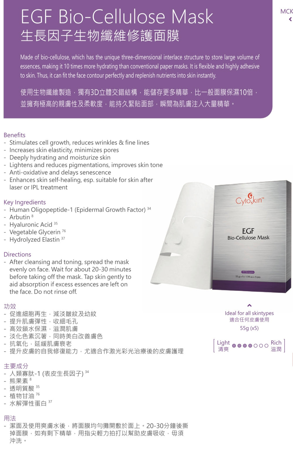 CytoSkin EGF Bio-Cellulose Mask維他命B5強效補濕精華55g x 5