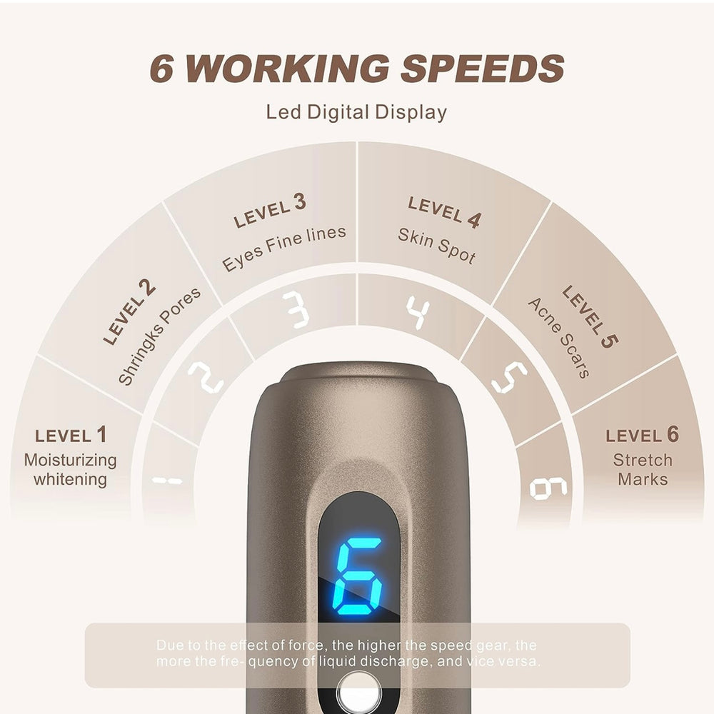 - ✅可調式針頭 - 這款微型針頭可自動進出皮膚。 可調式針頭長度和 6 種工作速度設定,從弱到強,範圍廣泛,考慮到所有皮膚問題和狀況。